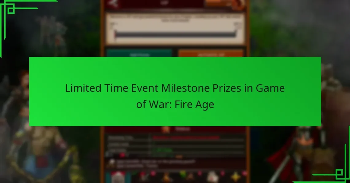 Limited Time Event Milestone Prizes in Game of War: Fire Age offer players the opportunity to earn valuable rewards by completing specific objectives during special events. These prizes can significantly enhance gameplay, providing essential resources and powerful items that improve a player’s performance. To maximise achievements, players should focus on strategic planning and effective resource management throughout the event. Key sections in the article: Toggle What are Limited Time Event Milestone Prizes in Game of War Fire Age? Definition and purpose of milestone prizes Duration and schedule of the event Integration with overall gameplay mechanics Eligibility criteria for participation Common…