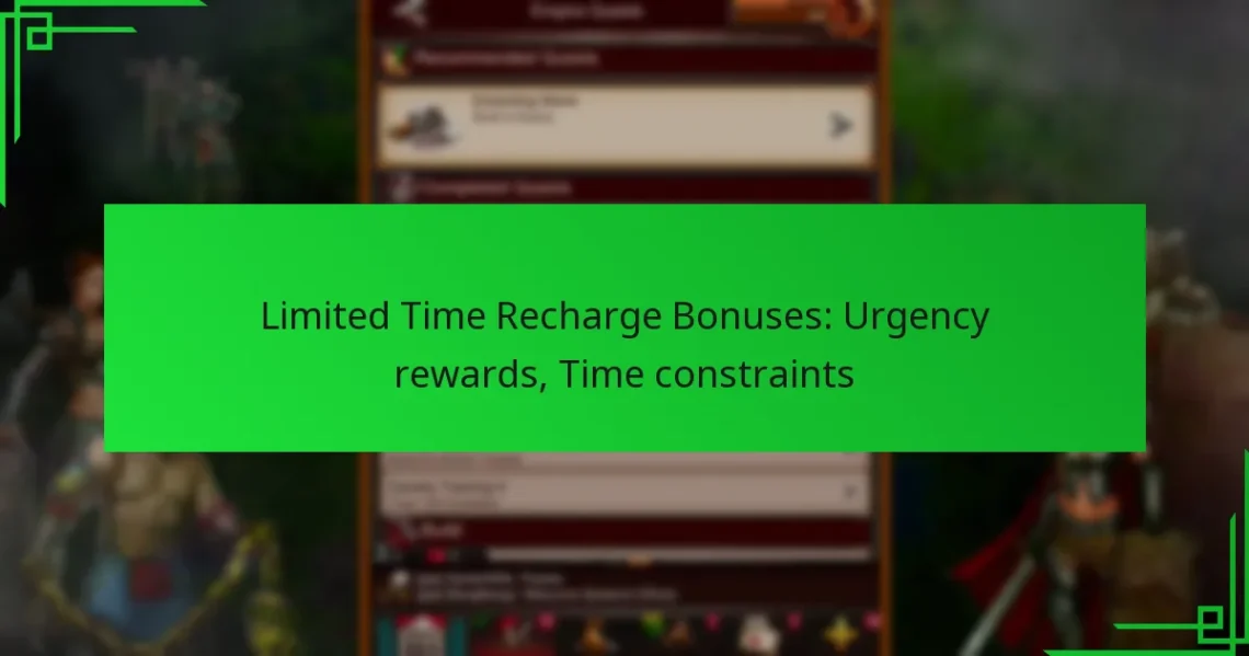 Limited Time Recharge Bonuses are enticing incentives that motivate players to make in-game purchases within a designated timeframe, offering enhanced value through additional resources or rewards. By creating a sense of urgency, these time-sensitive offers encourage quick decision-making, ensuring players don’t miss out on valuable benefits. To take advantage of these bonuses, it’s crucial to follow the specific redemption instructions provided by the platform, as they are only available for a short period. Key sections in the article: Toggle What are Limited Time Recharge Bonuses? Definition and purpose of recharge bonuses Types of recharge bonuses available Conditions for eligibility Examples…